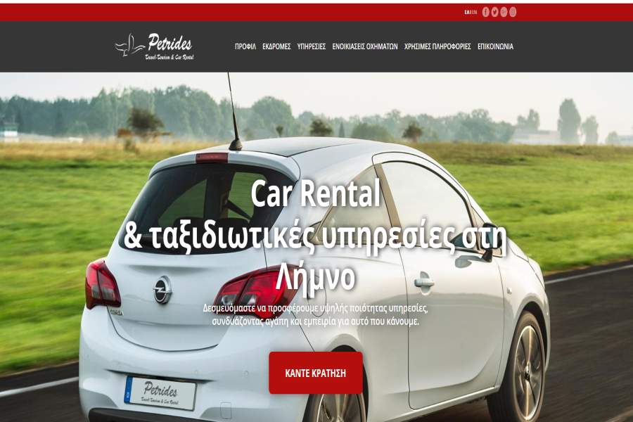 Η Petrides Travel & Rent a Car, ιδρύθηκε το 1969 και έχει αποκτήσει ευλόγως τη φήμη του καλύτερου ταξιδιωτικού γραφείου στο νησί της Λήμνου. Το μυστικό αυτής της φήμης είναι απλό: η γνώση μας για την τοπική αγορά συνδυάζεται με τον όγκο των επιχειρήσεων και οι μακροχρόνιες σχέσεις με τους προμηθευτές μας, μας επιτρέπουν να έχουμε εξαιρετικές τιμές. Το Τμήμα Αναψυχής και Ταξιδιωτικής Διαχείρισης της εταιρίας μας θα διασφαλίσει ότι κάθε λεπτομέρεια αντιμετωπίζεται με προσοχή και σεβασμό. Διαθέτουμε τα καλύτερα πολυτελή λεωφορεία και εντελώς νέα και μοντέρνα αυτοκίνητα προς ενοικίαση, το πιο άνετο μέσο μεταφοράς στη Λήμνο!